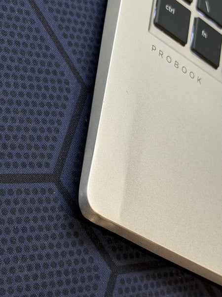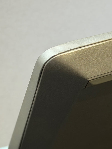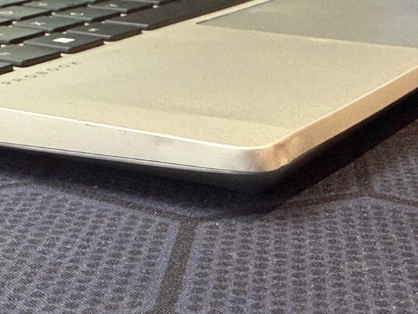 The front left corner of this laptop has had a bump - it's not too unsightly, but there if you look for it, caused a shallow crease to the corner - please see the final 4 photographs. In view of this cosmetic imperfection, we have offered this huge spec at a discount price.